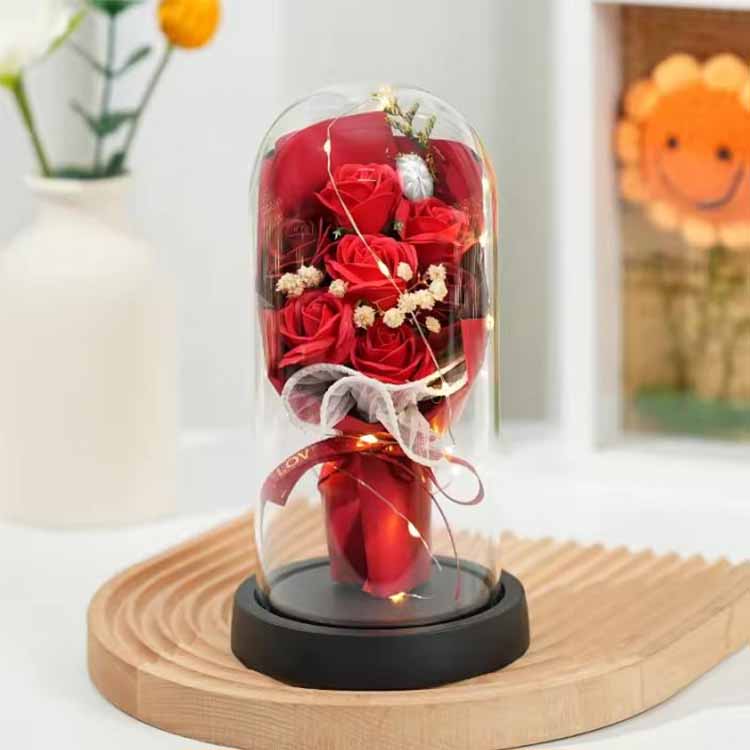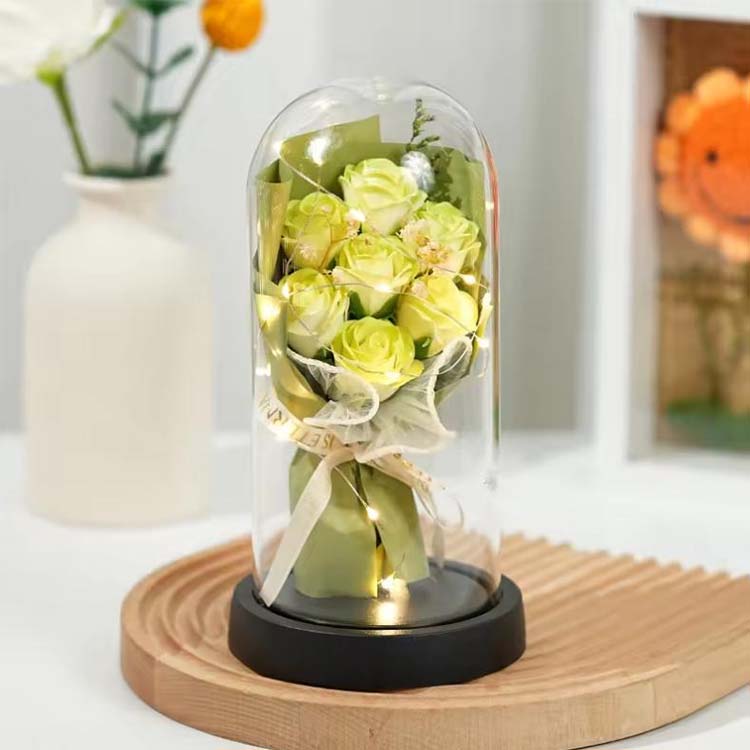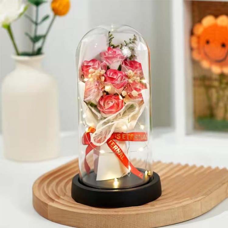 LEDギフトボックス付きのガラスドームソープローズブーケは、実用的な機能性と感傷的な意味を兼ね備えており、大切にする価値のあるギフトになります。ご自宅にロマンチックな雰囲気を加える場合でも、特別な人に特別な贈り物を贈る場合でも、それは暖かく忘れられない贈り物です。