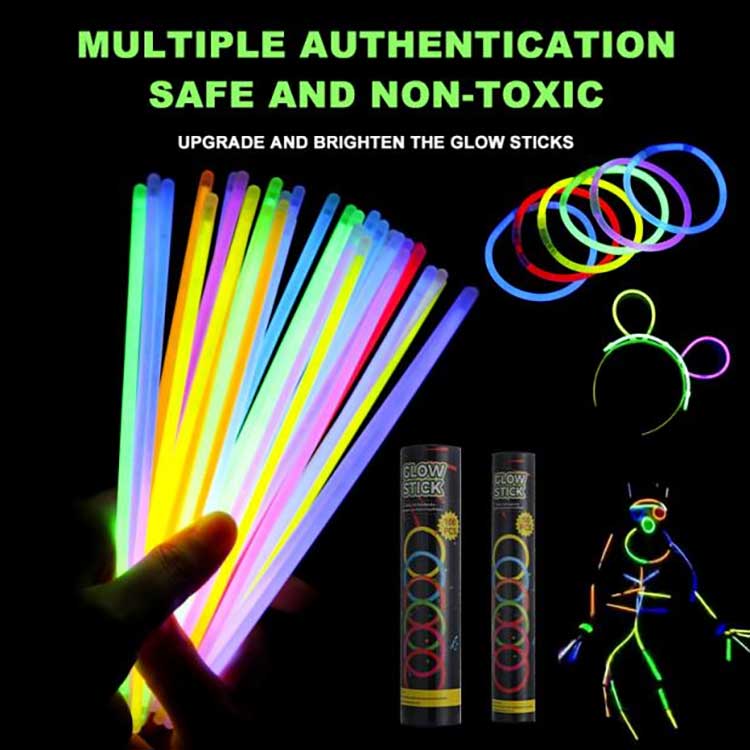 グロースティックはより明るく、より目を引く色にアップグレードされました。 1~3時間点灯し続けることが可能です。蛍光スティックに使用されている蛍光物質は高濃度であり、高輝度で長時間発光します。