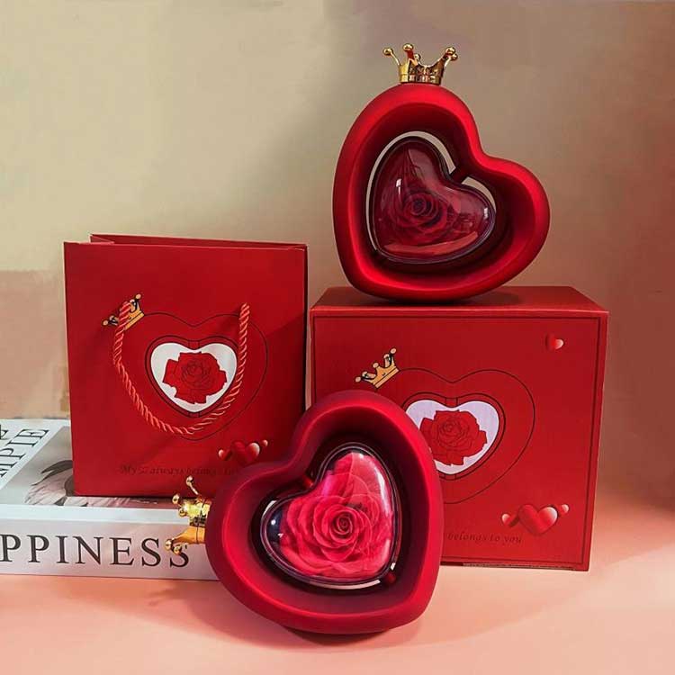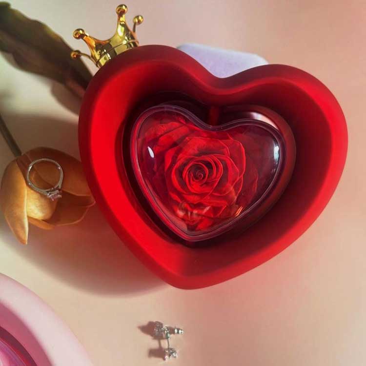 ハート型のローズジュエリーボックス。ハート型は愛を象徴し、永遠に大切にされるという意味が込められています。