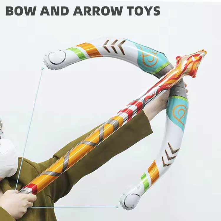インフレータブル弓矢のおもちゃセットはPVC製で、子供の熱狂的な遊びに耐えることができます。素早く膨らみ、長時間その形状を保ちます。交換しやすいように3本の剣が付属しています。