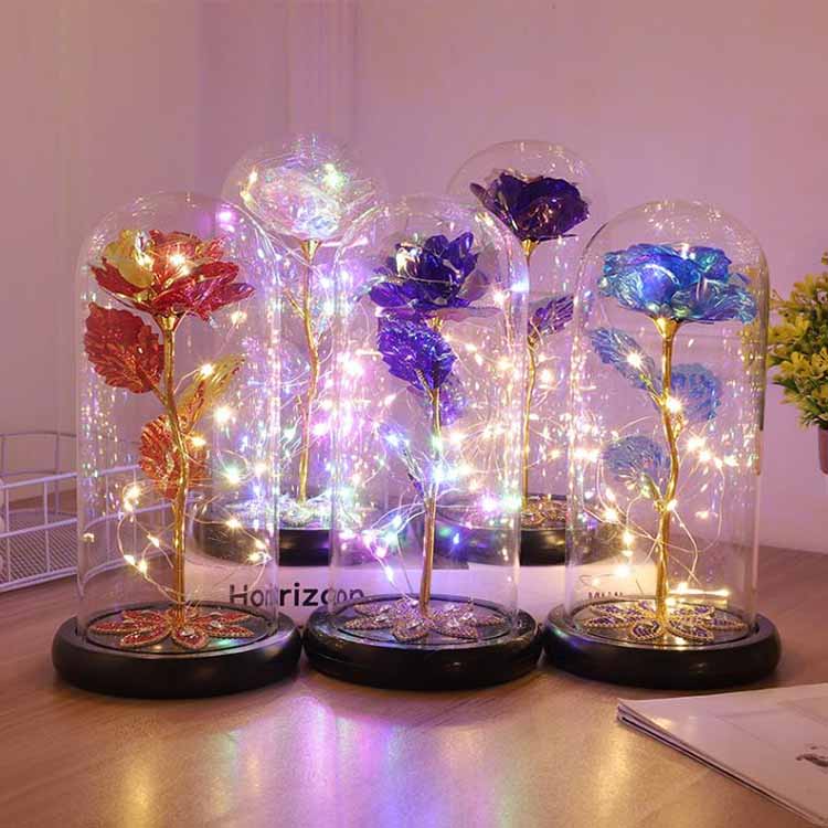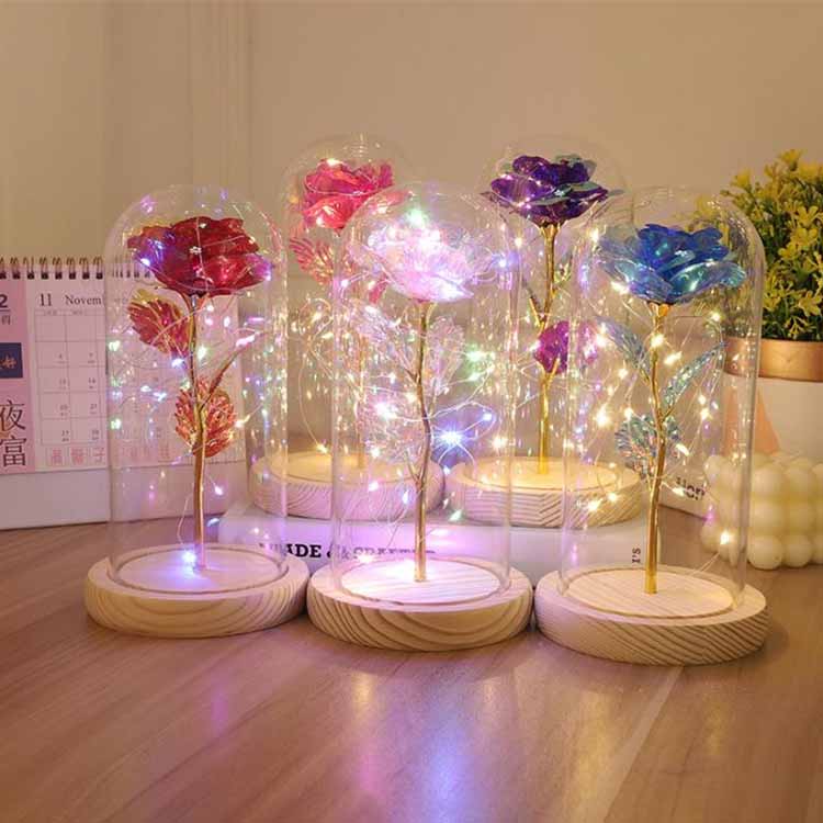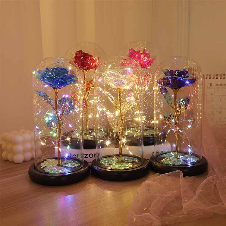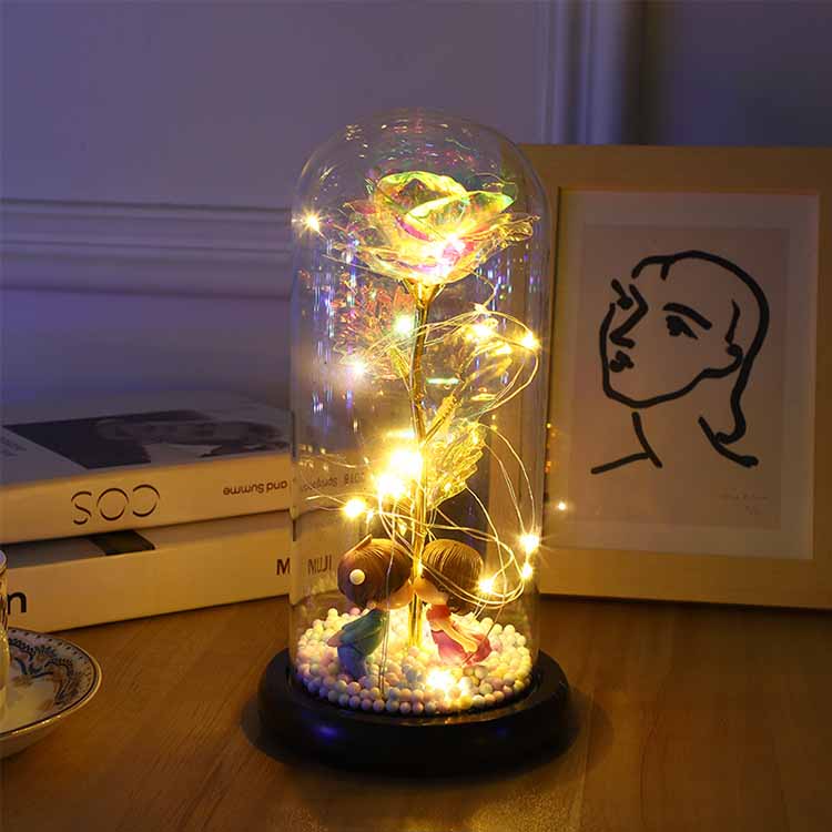 LED 24K ガラスは保護ケースの内側にあり、人形やおもちゃがたくさんあります。お客様のお好みの人形とお花の色をお選びいただけます。お客様の要件に応じてカスタマイズできます。