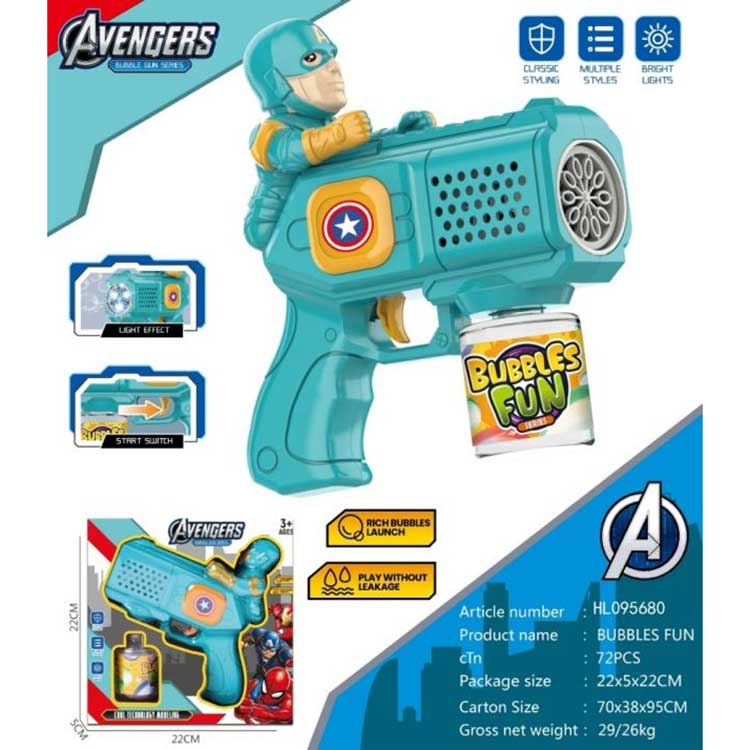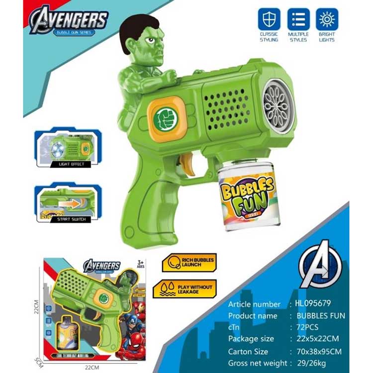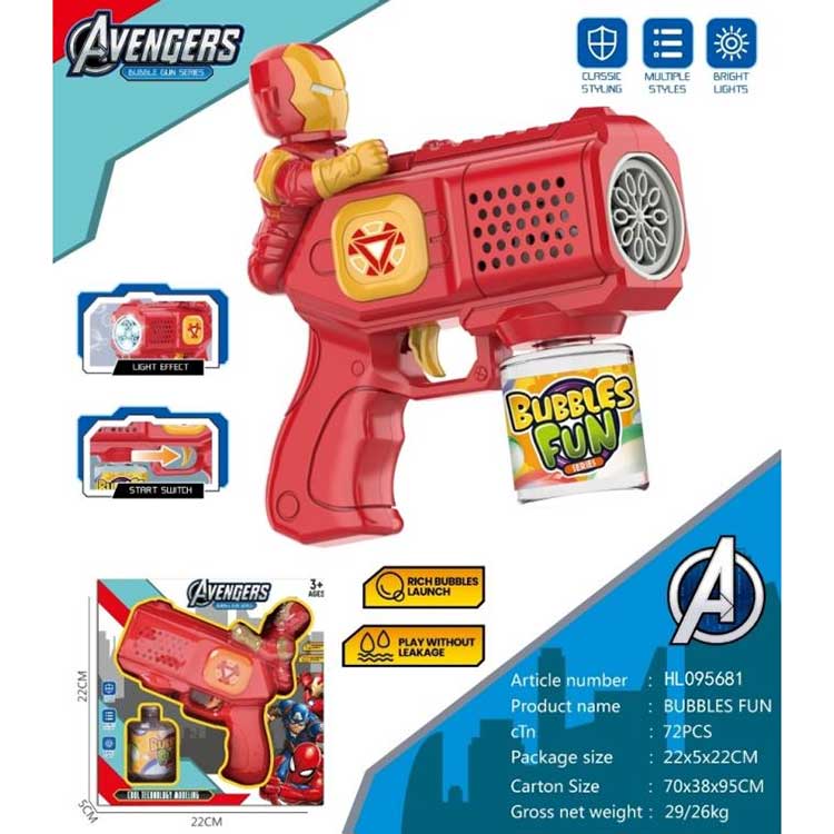 このマーベル スパイダーマン バブル マシンは、エレガントなギフトグレードのパッケージに入っており、ギフトやスーパーマーケットのディスプレイに適しています。当社は専門的なサンプル試験サービスを提供しています。サンプルに品質上の問題がある場合は、無料で交換または返金できます。大量注文の場合は、包括的な品質保証とアフターサービスが受けられます。返品、交換、修理など迅速に対応させていただきます。大量購入には特別割引が適用されます。詳細はお問い合わせください!