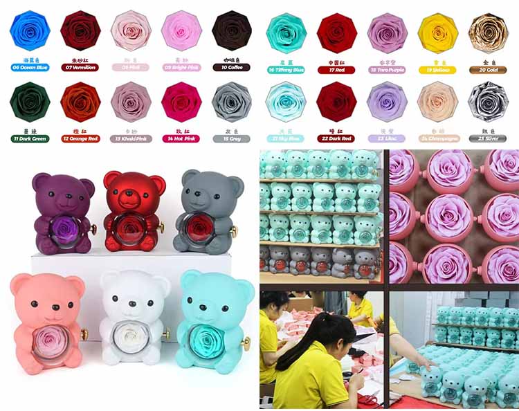 ソープフラワーとは異なります。 プリザーブドフラワーのサプライズハグベアは、新鮮な本物の花を使用し、乾燥、色保持、成形などの一連の特別なプロセスを経て作られています。これらの花は本物の花の豊かさと形を保持しているため、長持ちします。通常、3 ~ 5 年間持続します。水やり不要!彼らは活気に満ちた活気を保ちます!この心のこもった贈り物を永遠に残しましょう。